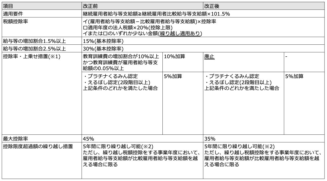 もうひとつは、中小企業向けの教育訓練費に係る上乗せ措置の廃止時期が大綱に記載されていない点です。